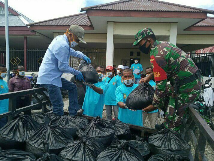 (Timika. Selasa, 12 Mei 2020). Sebagai wujud kepedulian terhadap warga binaan ditengah pandemi Covid-19, Bintara Pembina Desa (Babinsa) Kp. Mawoko Jaya, Koramil 1710-02/Timika (Serda Rusdin Wali) bersama Tim Relawan Covid-19, langsung via “pintu ke pintu” untuk membagikan sembako ke warga yang membutuhkan dampak dari pandemi Covid-19, bertempat di Kp. Mawoko Jaya, Distrik Wania, Kab. Mimika, Papua, Minggu (10/5/2020).