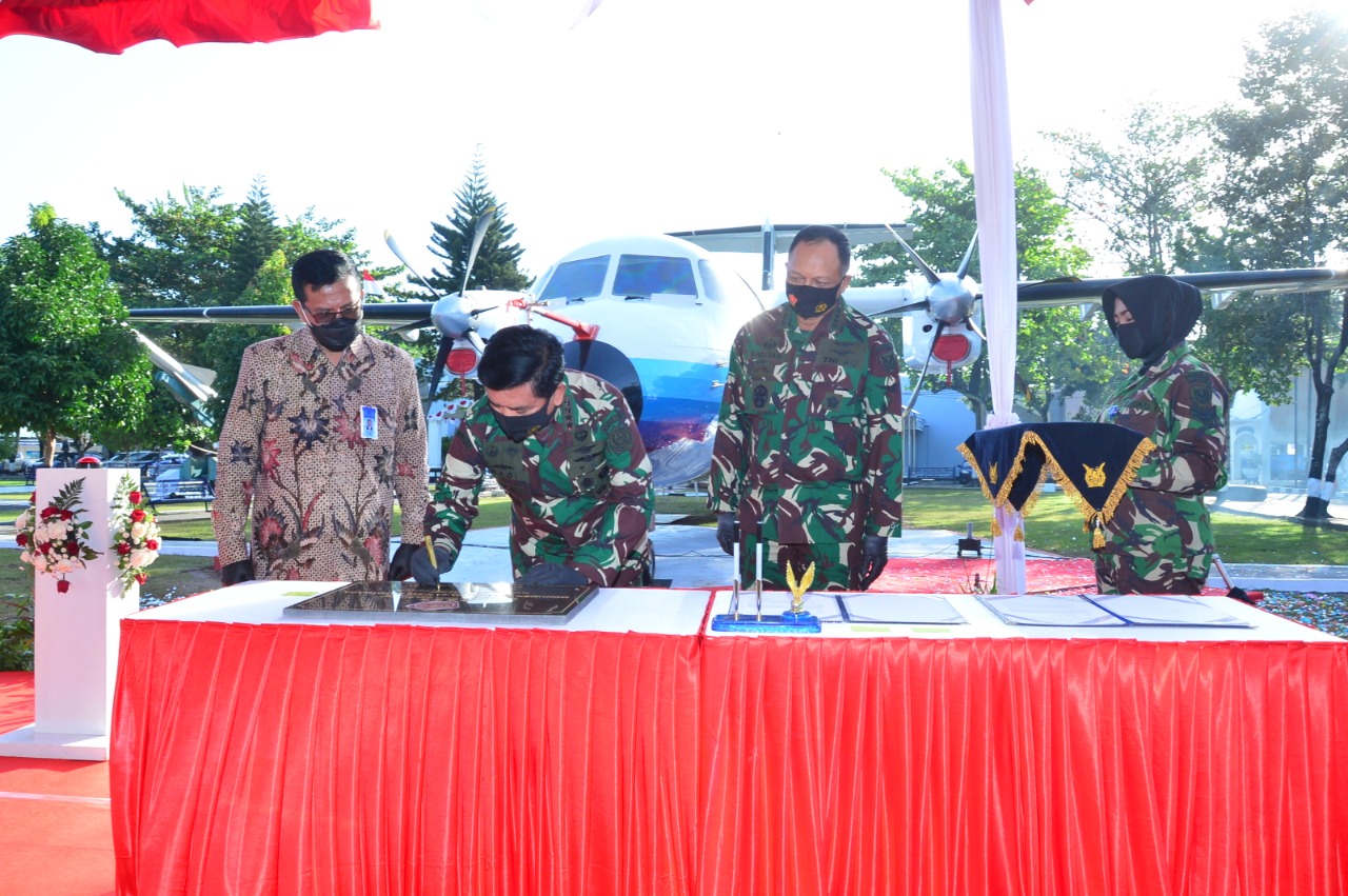 Puspen TNI, Panglima TNI Marsekal TNI Hadi Tjahjanto, S.I.P. didampingi Kasau Marsekal TNI Fadjar Prasetyo, S.E., M.P.P., Pangkogabwilhan III Letjen TNI GanipWarsito, Aslog Panglima TNI Marsda TNI Kukuh Sudibyanto, Aslog Kasau Marsda TNI Asep Dian Hermawan, dan Pangkoopsau-I Marsda TNI Tri Bowo Budi Santoso meresmikan Monumen Pesawat N250 Gatotkoco di Lanud Adisutjipto, Yogyakarta, Rabu (26/08/2020).